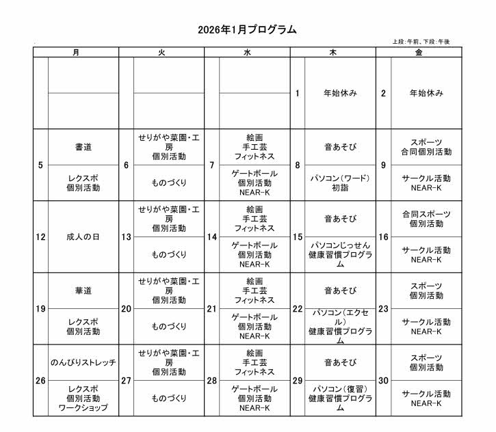 2025年12月・2026年1月 デイケアプログラム