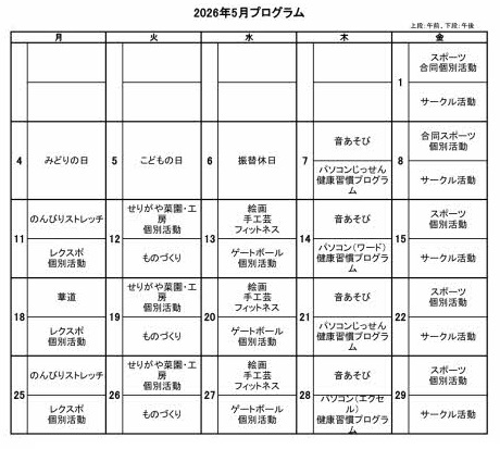 2026年4月・5月 デイケアプログラム
